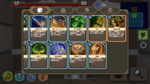 羽根がたくさん出たので鉄の矢を作り、矢スキルを使うことにした。五月雨撃ちとかも道中強かったけど、ボス戦で狩りが非常に有効でした。あと試しに破壊攻撃も2枚入れたんですが、軟化はボス戦ではかなり強かったです。まあでも出てきたボスはまたゴーレムだったんだけどね(笑)